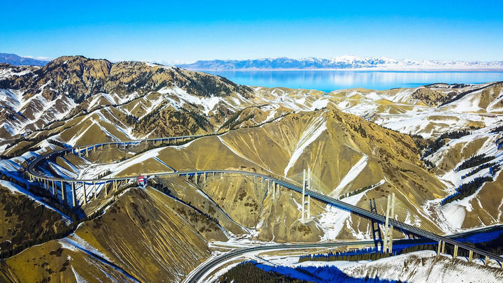 漫漫长路,如同飘带,装点天山,今朝更好看。(胡虎虎)