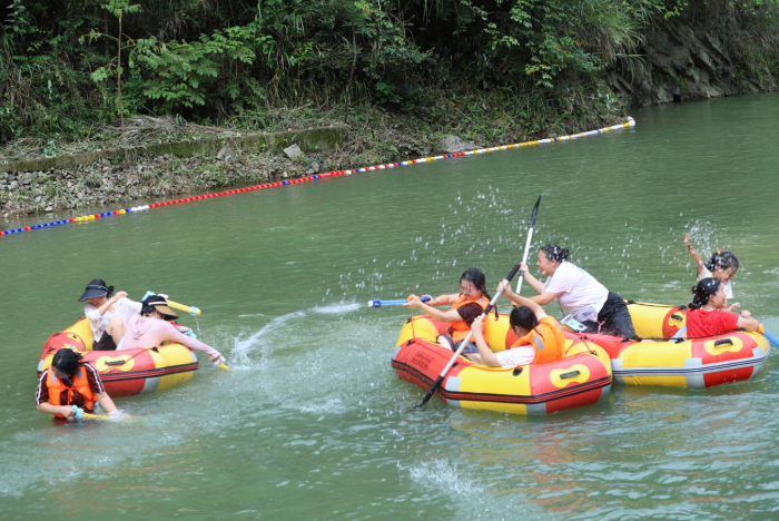本次“体彩杯”乡村篮球联赛的亮点,在于巧妙串联体育赛事与当地旅游资源。赛事期间,乐里镇同步举办以“村超燃全国・侗乡嗨翻天”为主题的2025年烧鱼节“嗨翻侗乡・水上狂欢”活动,打造出集七十二寨民俗文化、特色美食、体育赛事于一体的融合体验。抓鱼大赛的乐趣、皮划艇比赛的竞技、水枪大战的狂欢、桨板冲浪的惬意,将民族文化与水上乐趣完美融合,既拓展了乐里侗乡景区的旅游业态,更成功将“村超”流量引入村寨,让热度转化为实实在在的人气与增收。