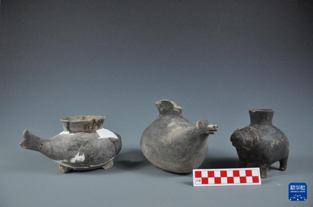 图为磨盘山遗址出土的崧泽文化时期仿生型器物鱼尊、牛尊和猪尊。