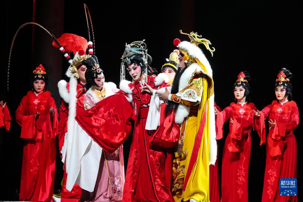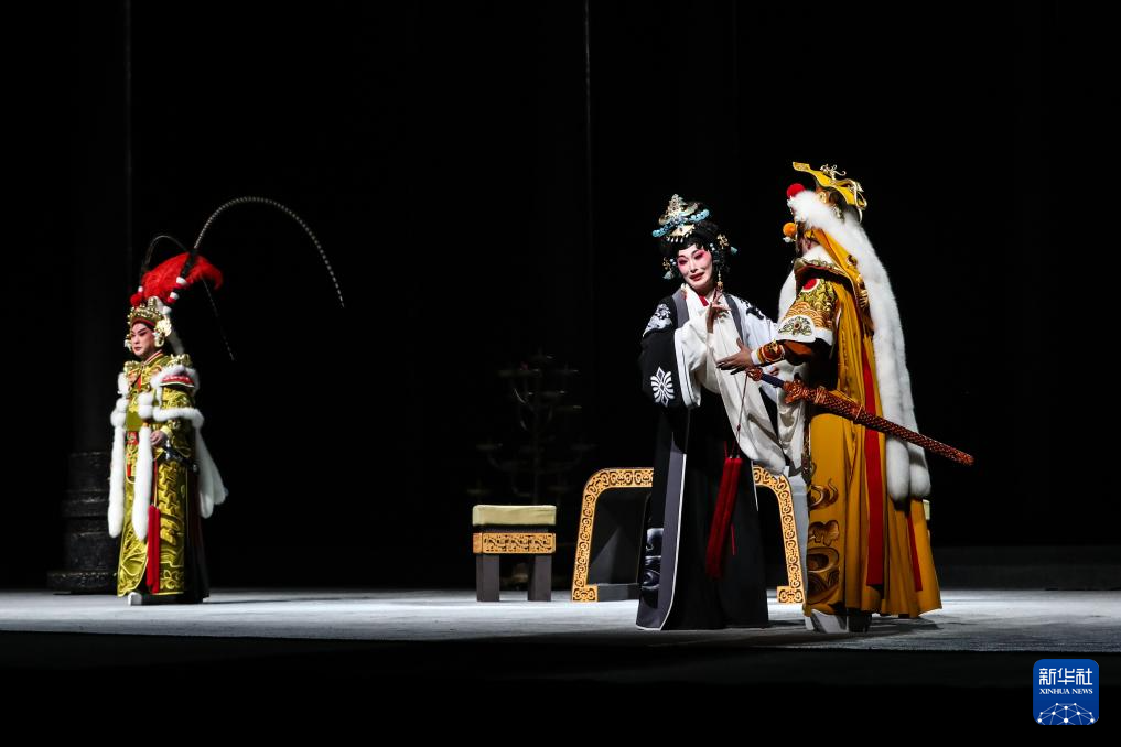 9月5日晚,演员在兰州音乐厅表演新编历史京剧《凉州辞》。