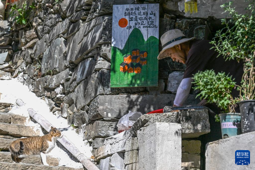 时值秋收时节,村民们利用晴好天气,将辣椒、玉米、山核桃等农作物晾晒在房前屋后,形成独具特色的“晒秋”景观。