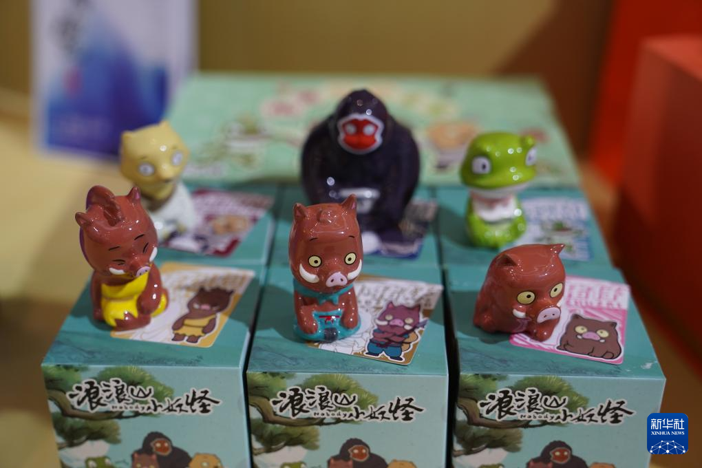这是陶瓷博览会展区展出的文创作品(10月18日摄)。