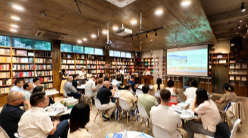 10月22日,在云南普洱学院那柯里绝版木刻教学实践基地,游客在讨论绝版木刻作品。