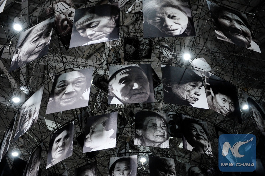 Portraits of victims are hung in the memorial for "comfort women" in Nanjing, east China's Jiangsu Province, Dec. 1, 2015. A memorial for "comfort women" during World War II opened to the public in Nanjing. It is the first memorial in China's mainland dedicated to the group, and was identified by the victims as a military brothel run by the invading Japanese more than 70 years ago. (Xinhua/Li Xiang)