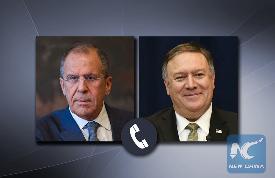 MOSCOW, March 25 (Xinhua) -- Russian Foreign Minister Sergei Lavrov and U.S. Secretary of State Mike Pompeo discussed issues of Venezuela, the Golan Heights and Ukraine during a phone call on Monday.