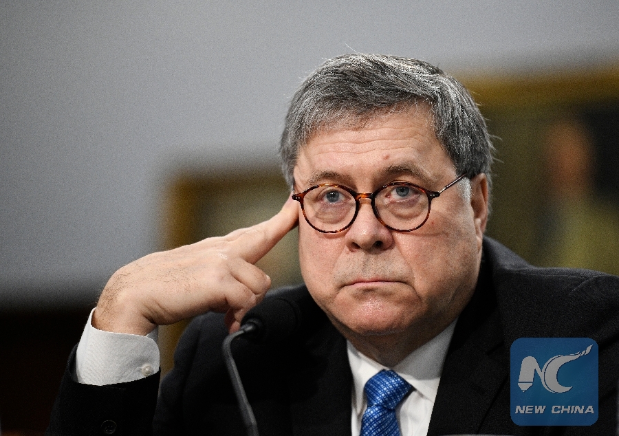 File Photo: U.S. Attorney General William Barr testifies before the Subcommittee on Commerce, Justice, Science, and Related Agencies, in Washington D.C., the United States, on April 9, 2019. (Xinhua/Liu Jie)