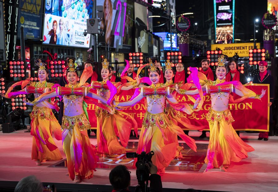 A 6-minute performance featuring Chinese folk dance amazed the audience and kicked off the Times Square New Year's Eve countdown in New York.