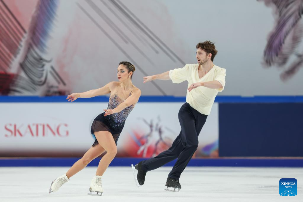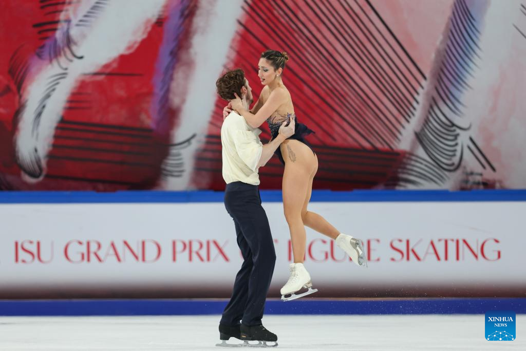 Sara Conti (L)/Niccolo Macii of Italy perform during the pair skating free skating at the Cup of China ISU Grand Prix of Figure Skating 2025 in southwest China's Chongqing Municipality, on Oct. 25, 2025. (Xinhua/Huang Wei)