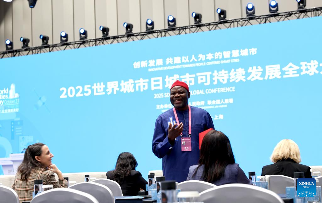 This photo taken on Oct. 26, 2025 shows the 2025 SDG Cities Global Conference in east China's Shanghai. Themed "Innovative Development Towards People-Centered Smart Cities" this year, the 2025 SDG Cities Global Conference kicked off here on Sunday. (Xinhua/Fang Zhe)