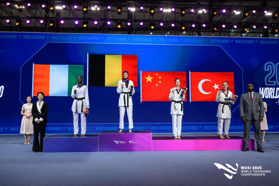 WUXI, China, Oct. 26 (Xinhua) -- Zhou Zeqi claimed China's third bronze medal at the World Taekwondo Championships in the women's 73kg category on Sunday, as Egypt, Belgium and South Korea shared the day's gold medals.