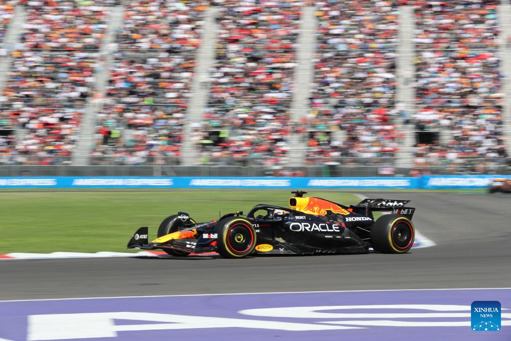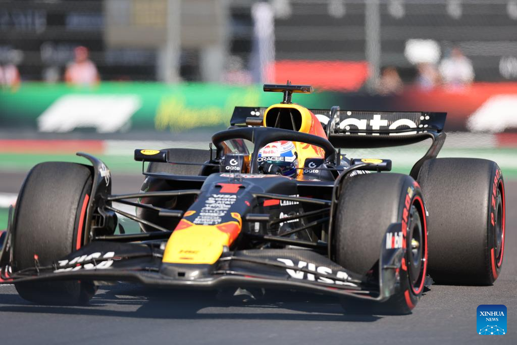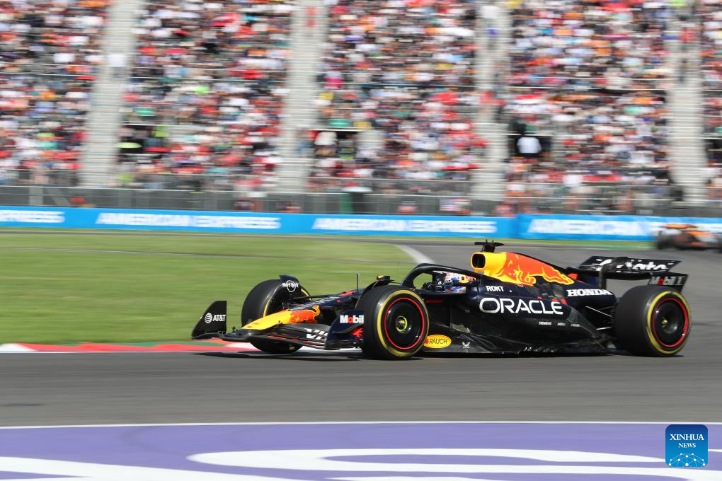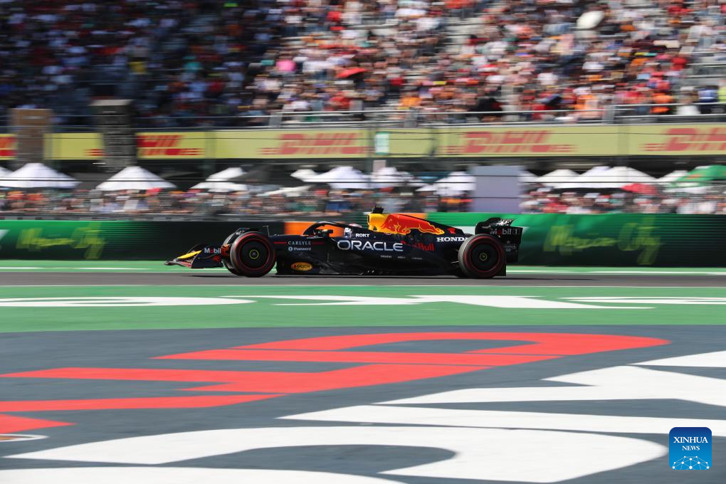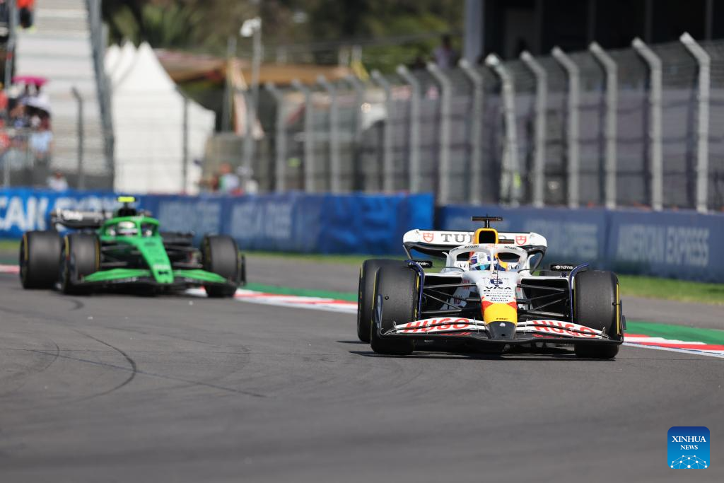 Red Bull's Dutch driver Max Verstappen competes during the Formula One Mexico Grand Prix at the Hermanos Rodriguez Circuit in Mexico City, Mexico, Oct. 26, 2025. (Xinhua/Li Mengxin)