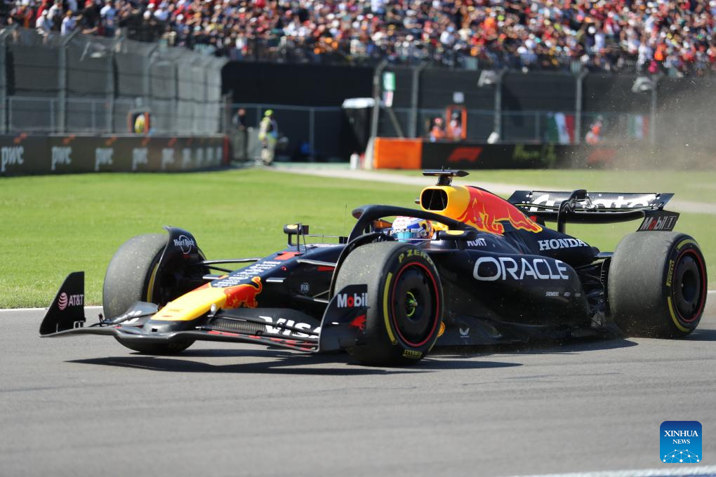 Red Bull's Dutch driver Max Verstappen races off the track during the Formula One Mexico Grand Prix at the Hermanos Rodriguez Circuit in Mexico City, Mexico, Oct. 26, 2025. (Xinhua/Li Mengxin)
