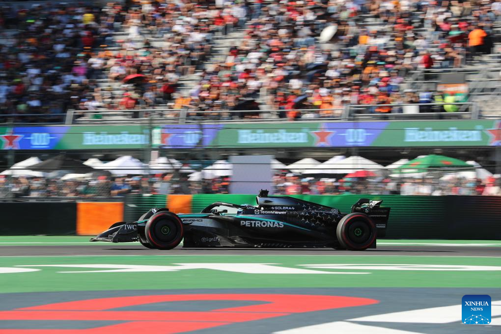 Mercedes' British driver George Russell competes during the Formula One Mexico Grand Prix at the Hermanos Rodriguez Circuit in Mexico City, Mexico, Oct. 26, 2025. (Xinhua/Li Mengxin)
