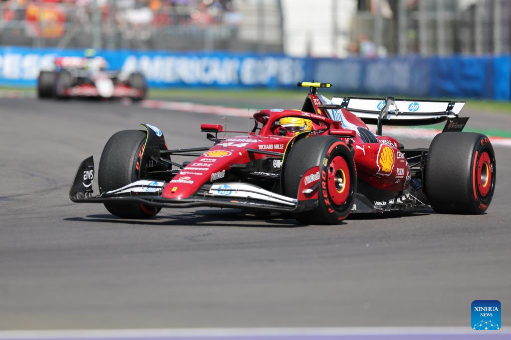 Ferrari's British driver Lewis Hamilton competes during the Formula One Mexico Grand Prix at the Hermanos Rodriguez Circuit in Mexico City, Mexico, Oct. 26, 2025. (Xinhua/Li Mengxin)