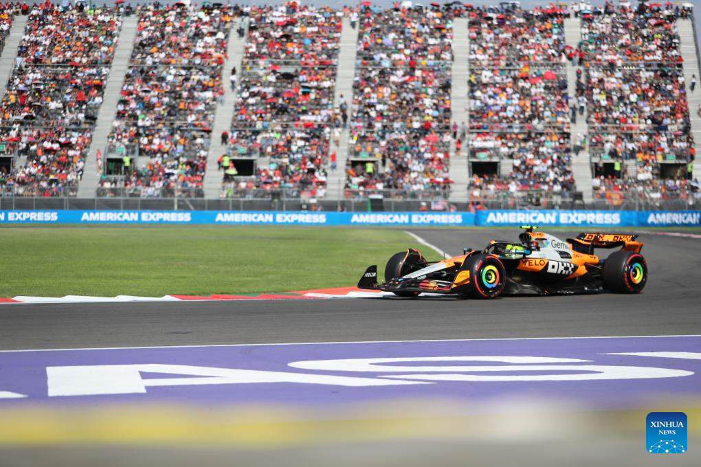 McLaren's British driver Lando Norris competes during the Formula One Mexico Grand Prix at the Hermanos Rodriguez Circuit in Mexico City, Mexico, Oct. 26, 2025. (Xinhua/Li Mengxin)