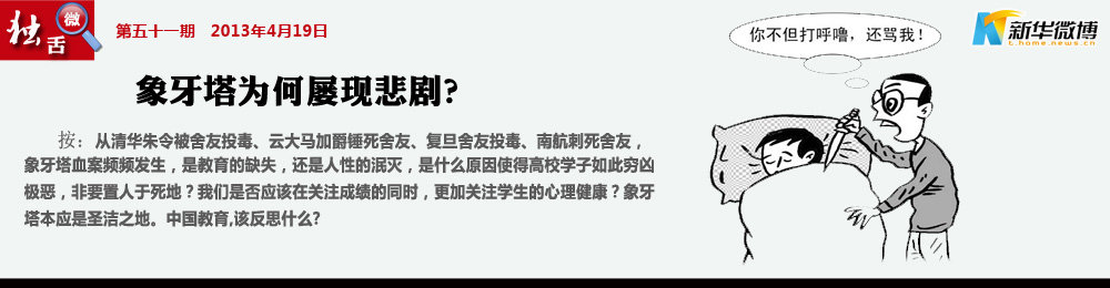 理解為主,引導為輔 關(guān)注大學生群體,理解他們的合理需要,引導他們好好生活,處理好人際關(guān)系,讓他們健康成長,成為社會的財富,而不是悲劇的劊子手。