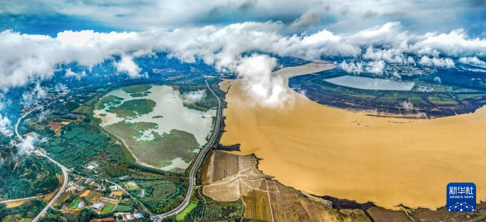 10月17日在山西省运城市平陆县境内拍摄的黄河云海景观。