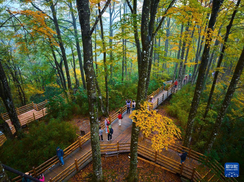 10月18日,游客在四川省光雾山风景区的天然画廊畅游。