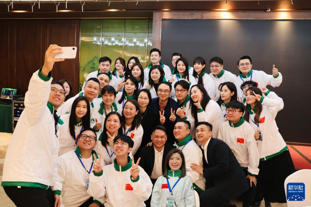 10月23日,“澳门青年看祖国”参访团成员一起合影。新华社发(刘玉珠 摄)