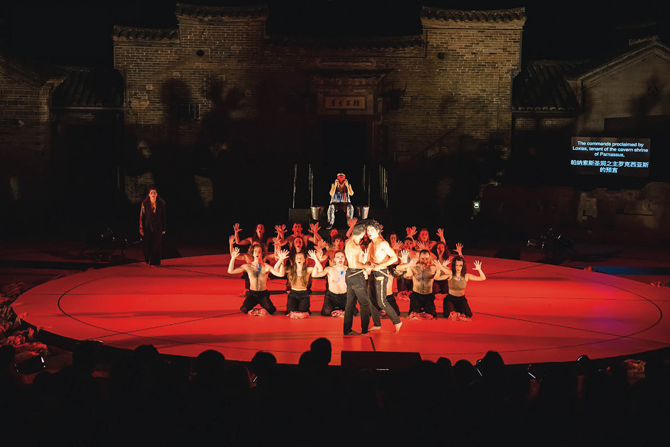 2024年,《俄瑞斯忒亚》在希腊埃皮达鲁斯剧场——现存最古老的古希腊剧场里首演。2025年初夏,它来到在中国南方一个偏远小县城——会昌,让这里与世界连接。会昌戏剧小镇赖家老屋广场前搭出一块圆形空地,短暂化身古希腊剧场。小镇街头巷尾,中国的观众与来自希腊的演员们偶遇,相谈甚欢。有希腊演员表示,不舍得离开中国。