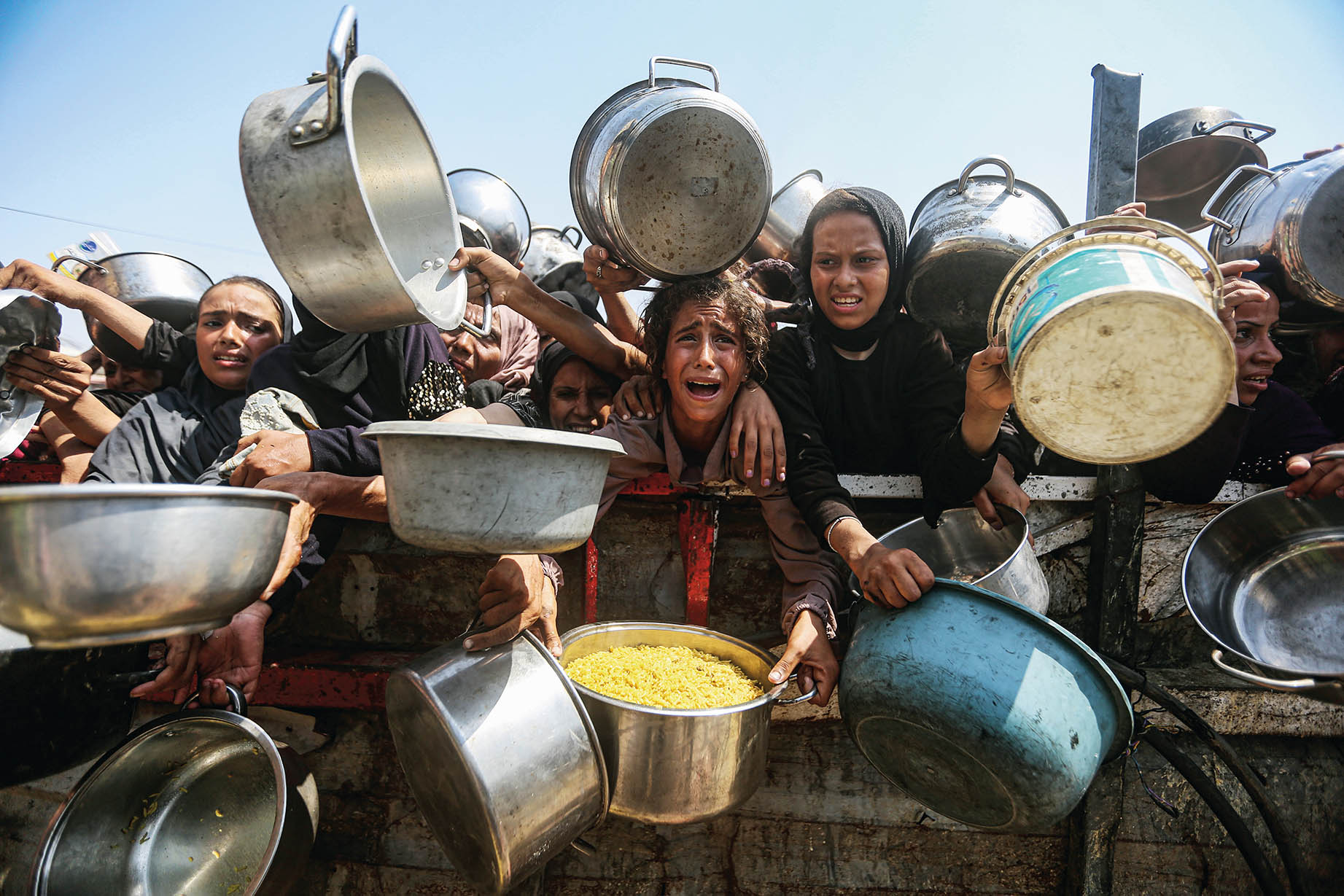 8月10日,民众在加沙城领取免费食物