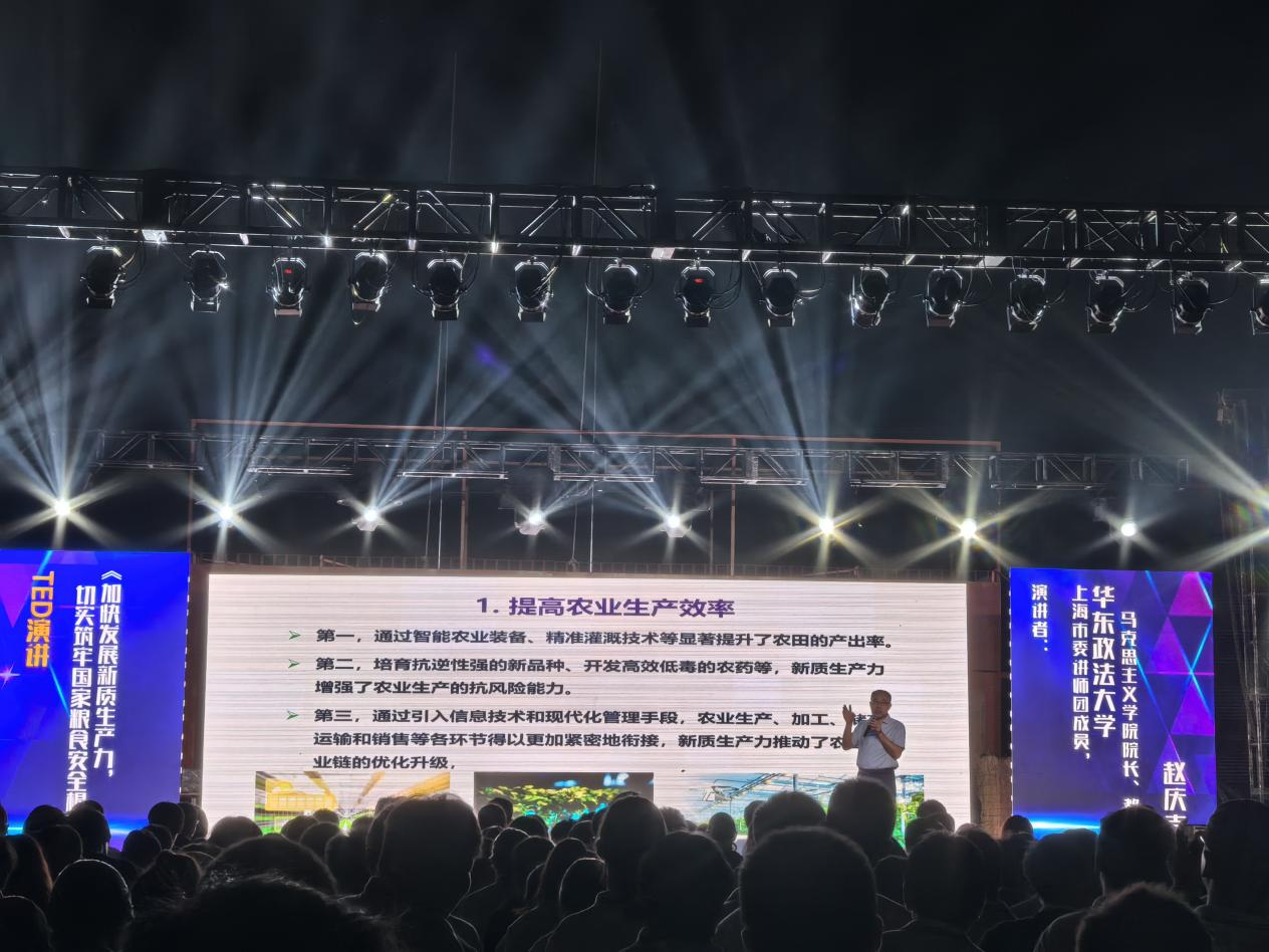 华东政法大学马克思主义学院院长赵庆寺带来以“加快发展新质生产力,切实筑牢国家粮食安全根基”为主题的演讲,他以身边案例、通俗语言解读乡村振兴战略,打造一堂田野上的“大思政课”。