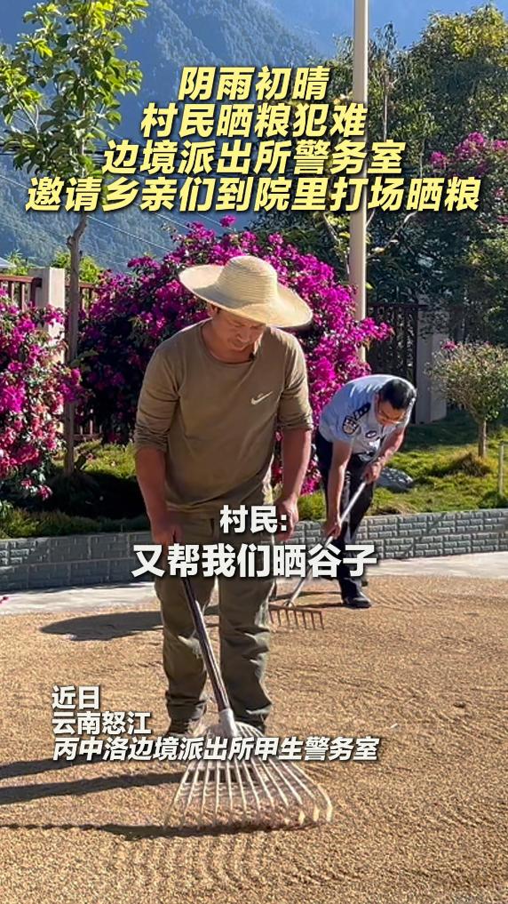 警務(wù)室民警:“鄉(xiāng)親們,院內(nèi)可曬糧!”
