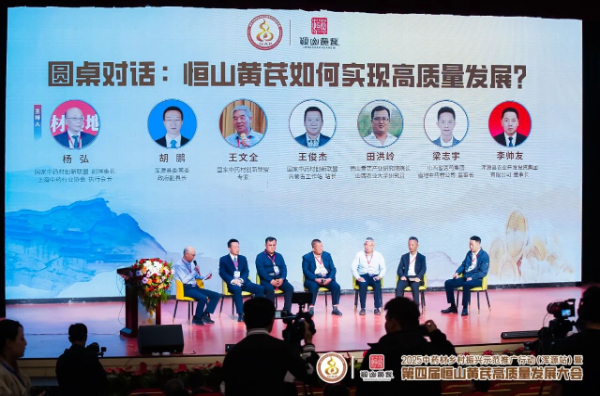 围绕“恒山黄芪如何实现高质量发展”这一议题,还有多位嘉宾进行了圆桌对话。山西省医药集团道地中药材公司董事长梁志宇提出,基于恒山黄芪生长环境特殊、质量优越、产量稀缺的特性,恒山黄芪应定位于“塔尖”的高端产品;浑源县农业开发投资集团董事长李帅友则结合黄芪人工采挖环节等痛点问题,提出加强科学研究、精深加工、不断开发新产品等建议;浑源县委常委、副县长胡鹏回应,政府将设立“恒山黄芪产业发展基金”,撬动社会资本投入深加工与品牌建设,同时推动“黄芪+文旅”融合,拓展产业链价值。