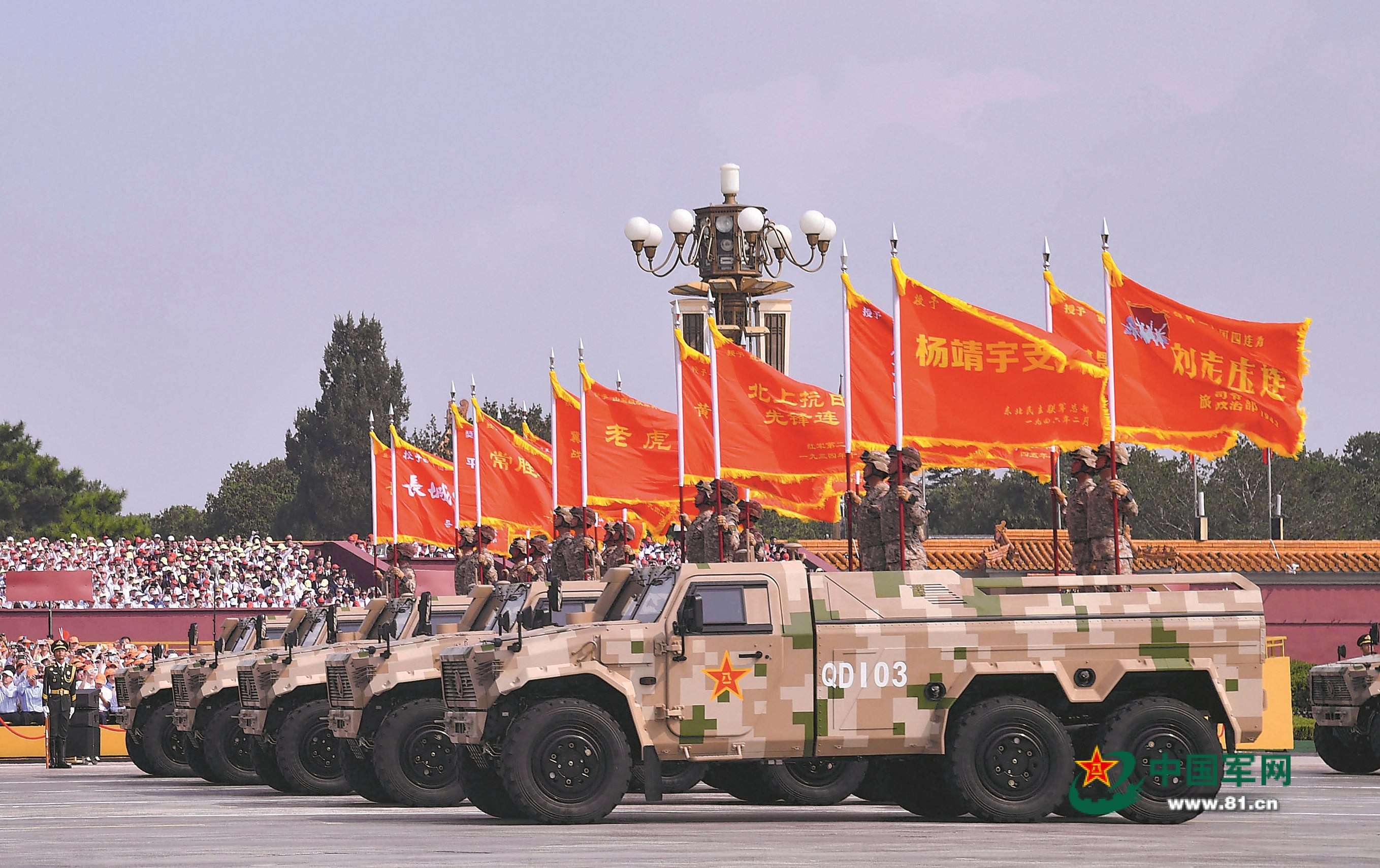 纪念中国人民抗日战争暨世界反法西斯战争胜利80周年阅兵式上,战旗方队气势如虹。“刘老庄连”战旗在其中迎风飘扬,接受党和人民检阅。解放军报记者 张雷 摄
