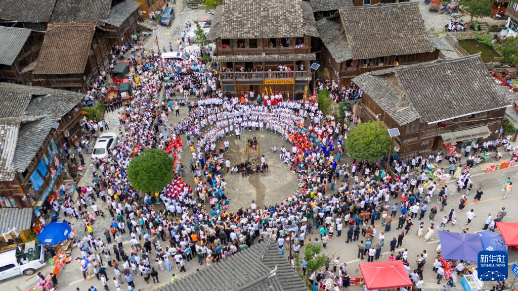 这是2024年7月20日在贵州省黎平县双江镇黄岗村拍摄的 “喊天节”活动现场(无人机照片)。