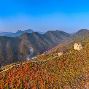 深秋时节,位于河北秦皇岛的董家口长城沿线层林尽染,呈现壮观景色。
