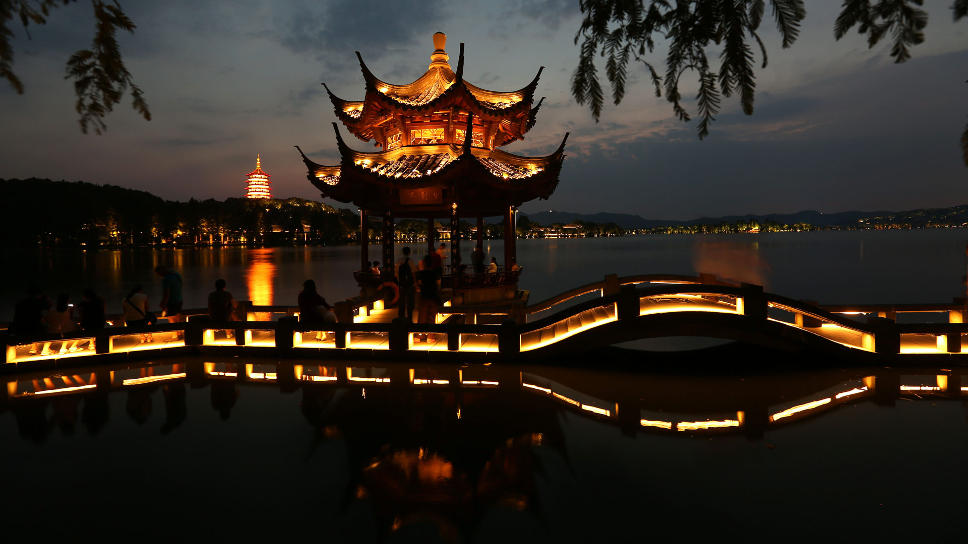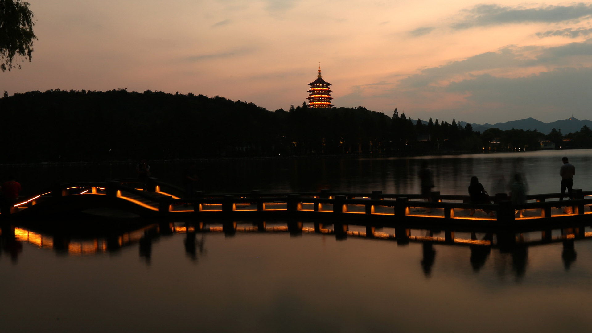 杭州西湖夜景(8月31日攝)。臨近G20杭州峰會,杭州夜色柔美,燈光璀璨。9月4日至5日,二十國集團(G20)領(lǐng)導人第十一次峰會將在浙江杭州舉行。 新華社記者殷剛攝