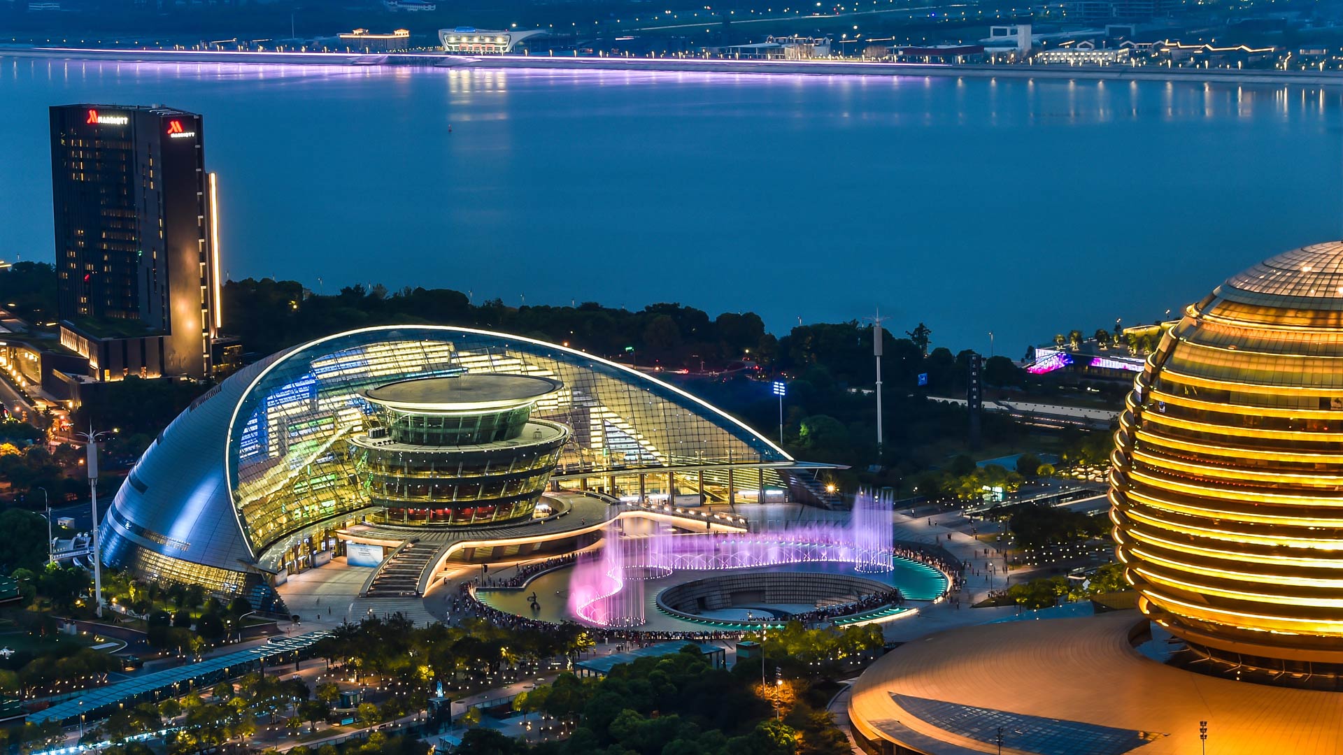 杭州大劇院燈光璀璨(8月31日攝)。臨近G20杭州峰會,杭州夜色柔美,燈光璀璨。9月4日至5日,二十國集團(G20)領(lǐng)導人第十一次峰會將在浙江杭州舉行。 新華社記者 徐昱 攝