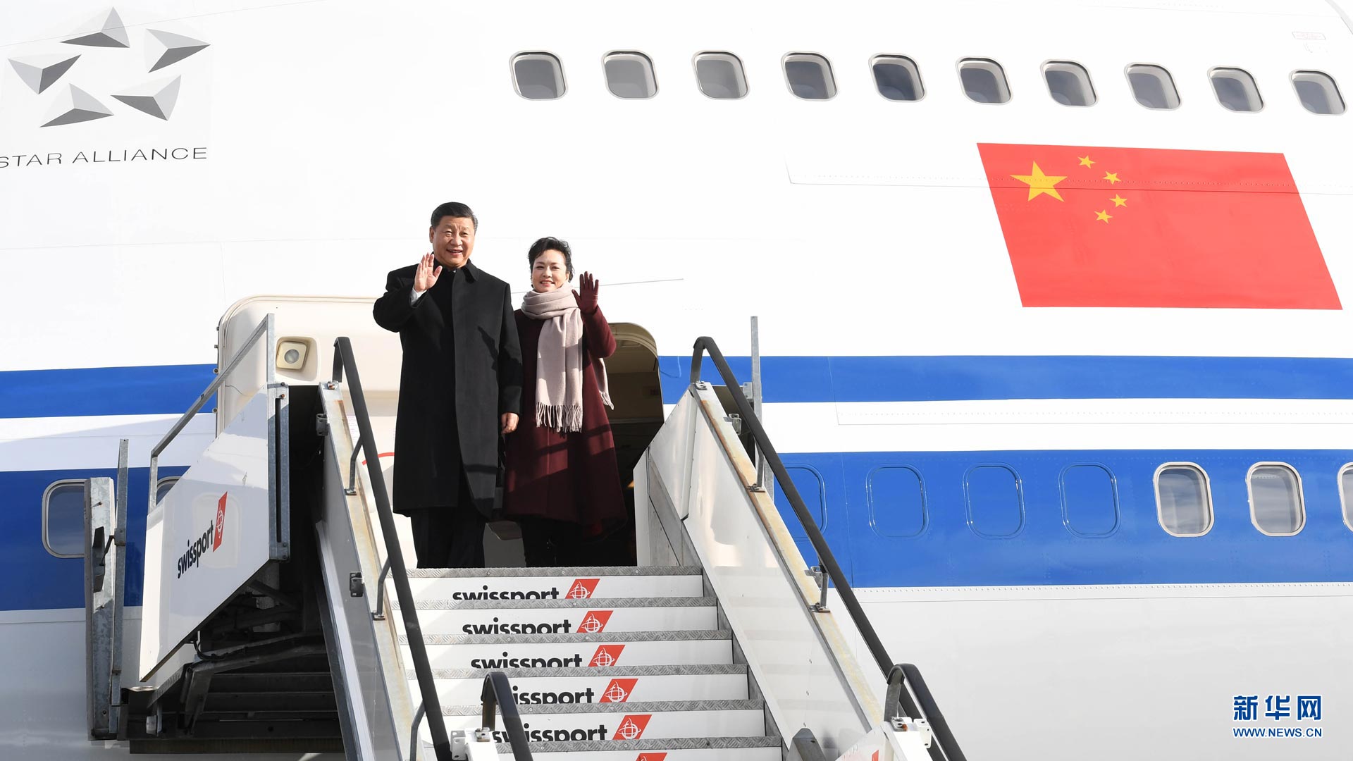 1月15日,國(guó)家主席習(xí)近平乘專機(jī)抵達(dá)蘇黎世,開始對(duì)瑞士聯(lián)邦進(jìn)行國(guó)事訪問(wèn)。 這是習(xí)近平和夫人彭麗媛步出艙門。新華社記者饒愛(ài)民攝2017-01-16