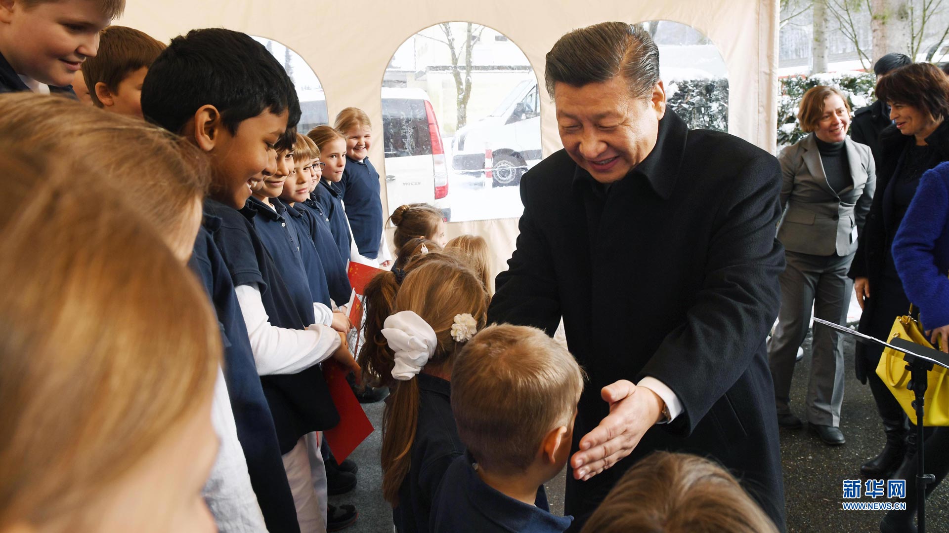 1月15日,國(guó)家主席習(xí)近平在瑞士聯(lián)邦主席洛伊特哈德陪同下,乘坐瑞士政府專列自蘇黎世前往瑞士首都伯爾尼。在專列行進(jìn)過(guò)程中,習(xí)近平和夫人彭麗媛受洛伊特哈德主席夫婦邀請(qǐng),在輕松愉快的氛圍中品茶暢談。這是習(xí)近平在伯爾尼克爾薩茨火車站觀看瑞士童聲合唱團(tuán)表演后,與合唱團(tuán)的小演員交流。 新華社記者饒愛(ài)民攝2017-01-16