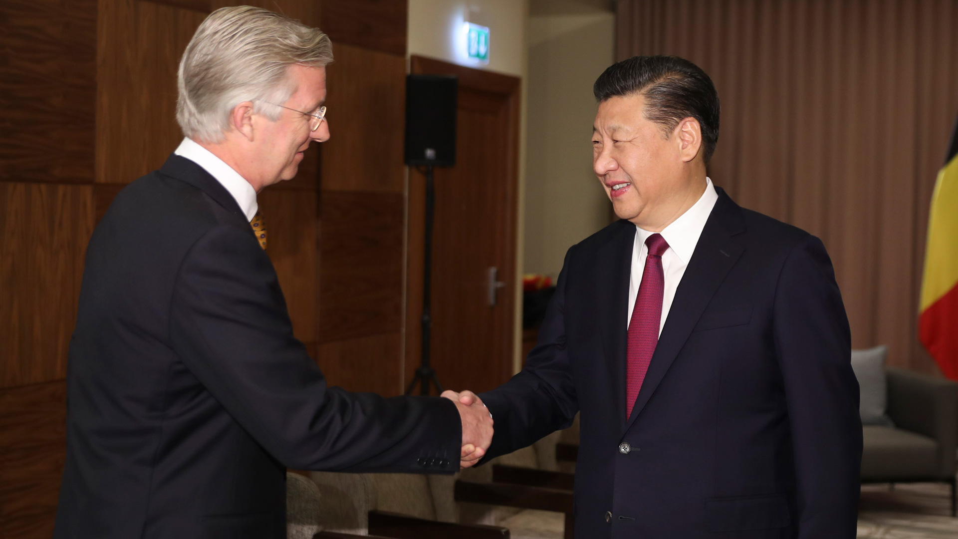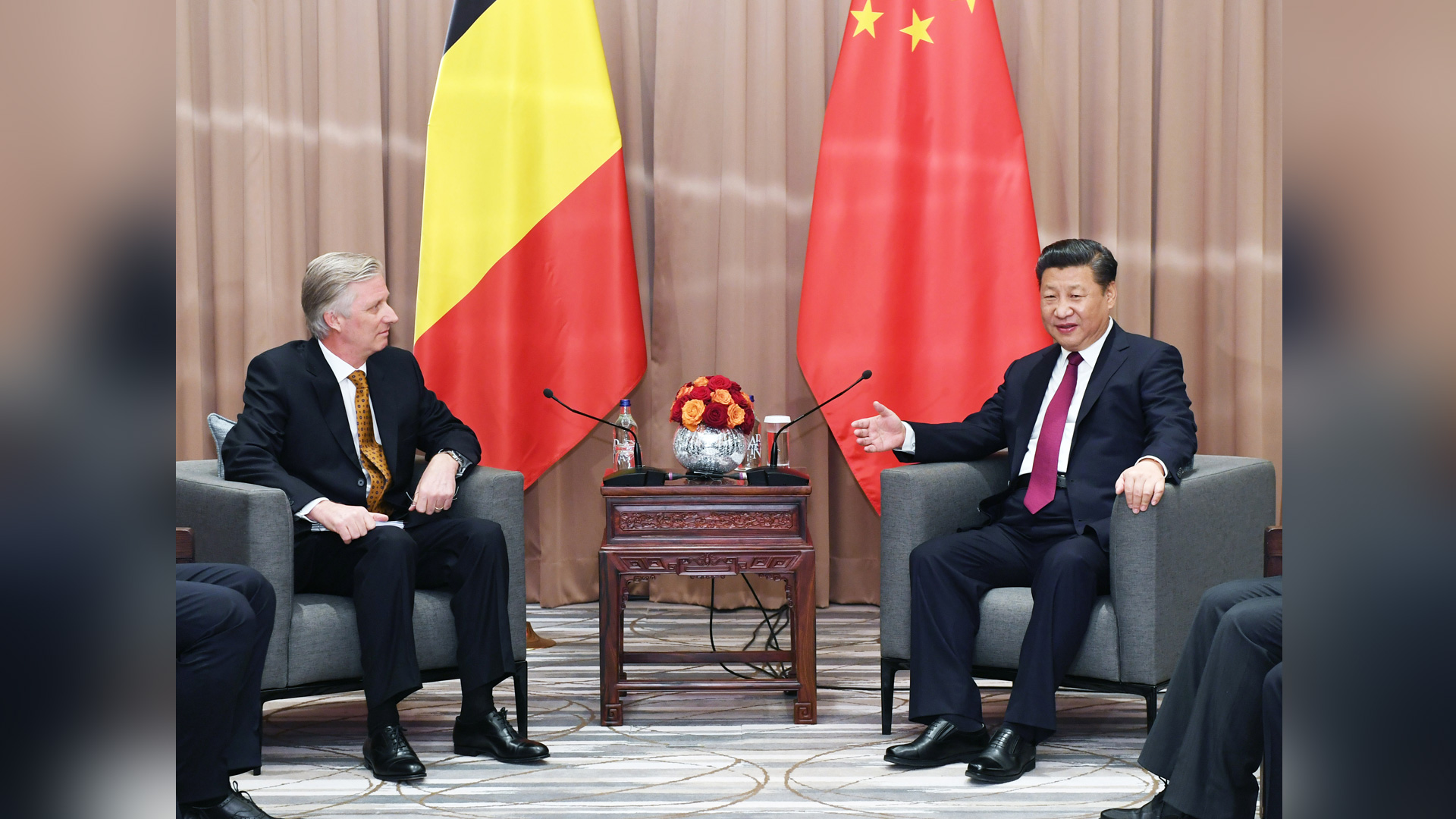 1月17日,國(guó)家主席習(xí)近平在瑞士達(dá)沃斯會(huì)見(jiàn)比利時(shí)國(guó)王菲利普。新華社記者 丁林 攝2017-01-18
