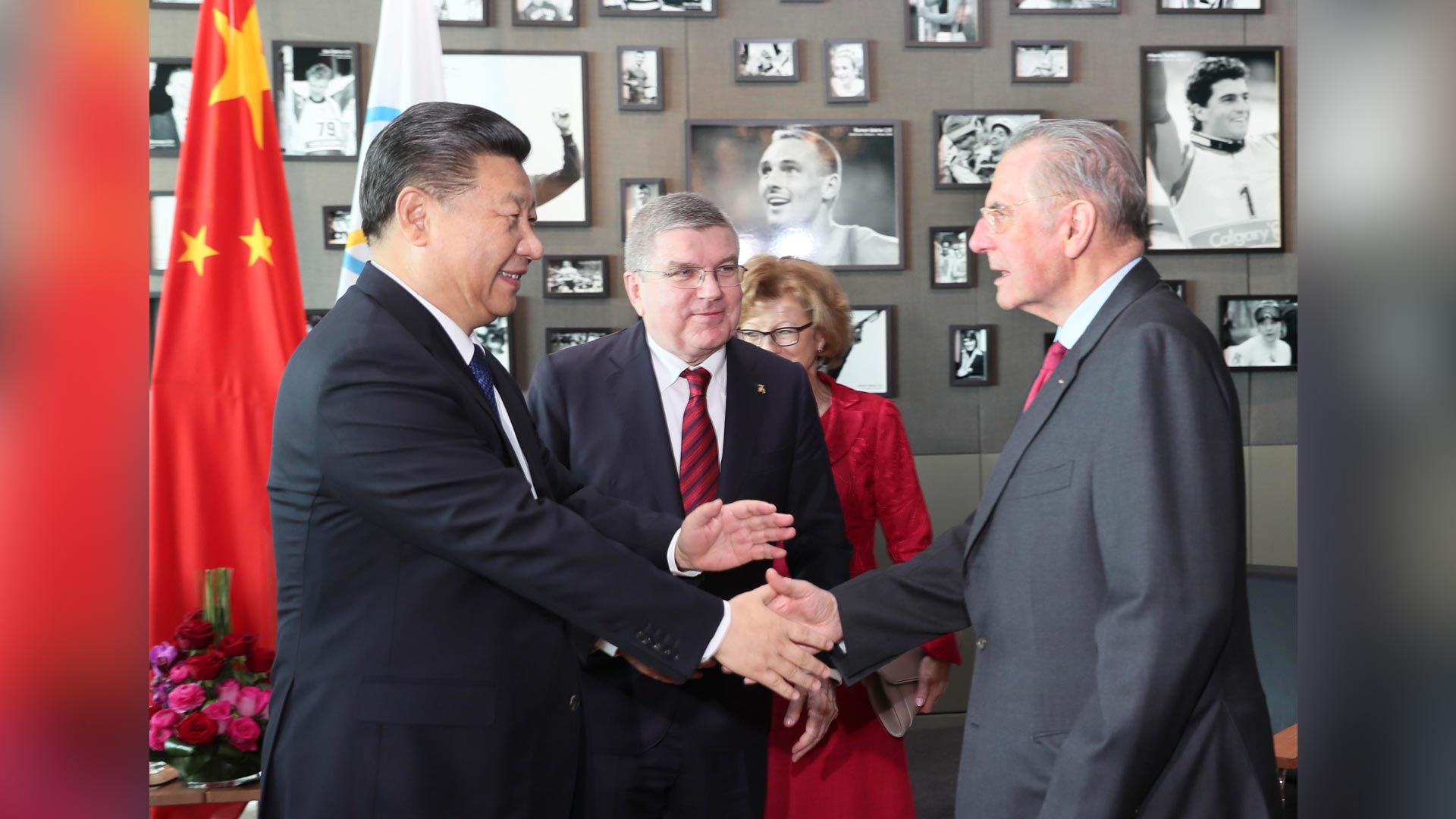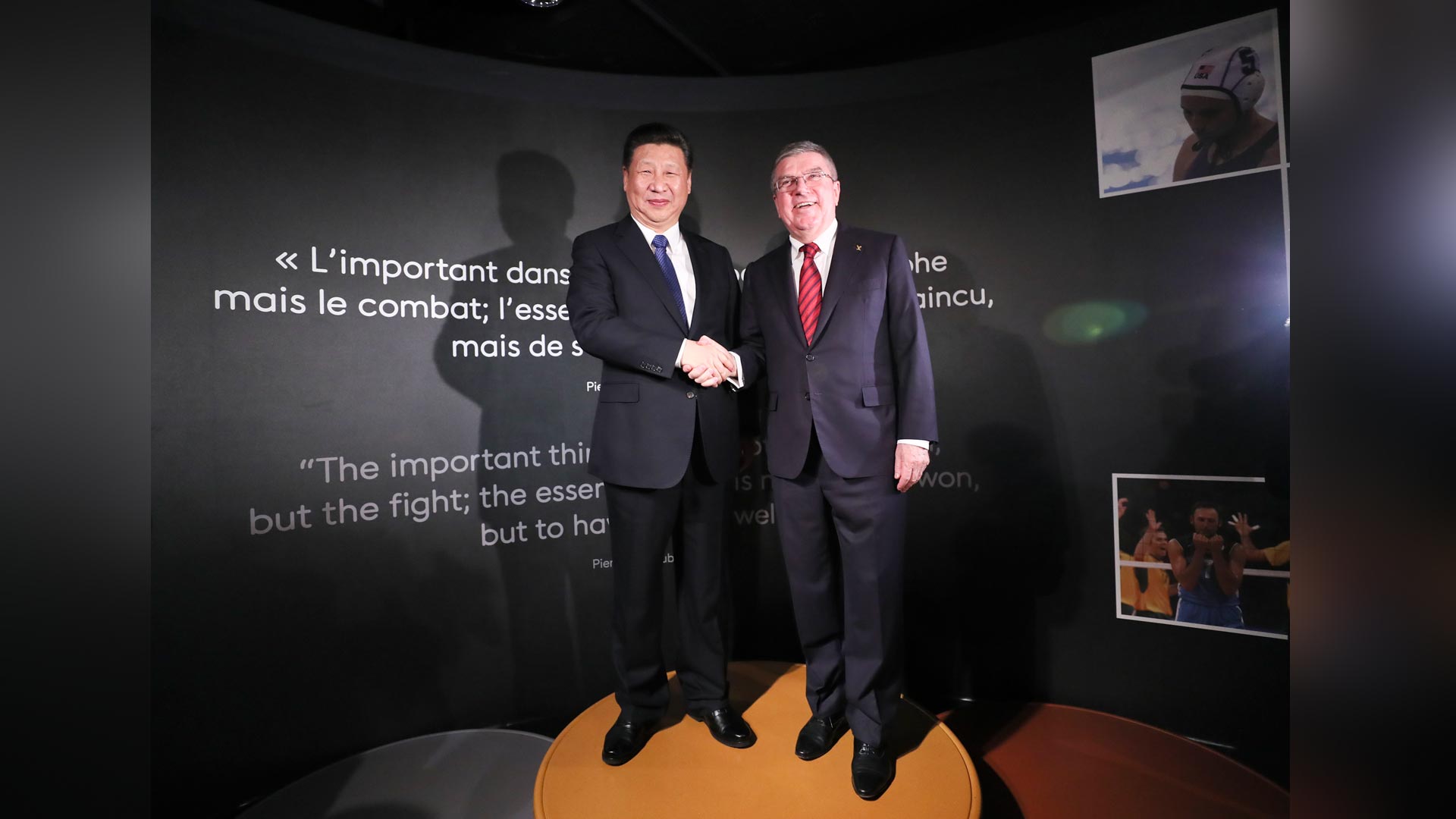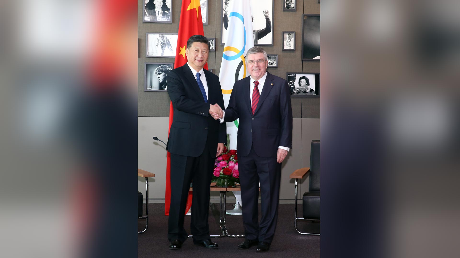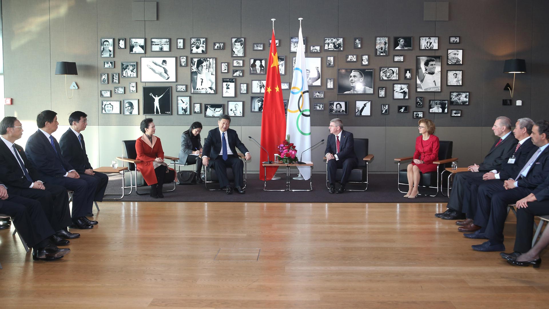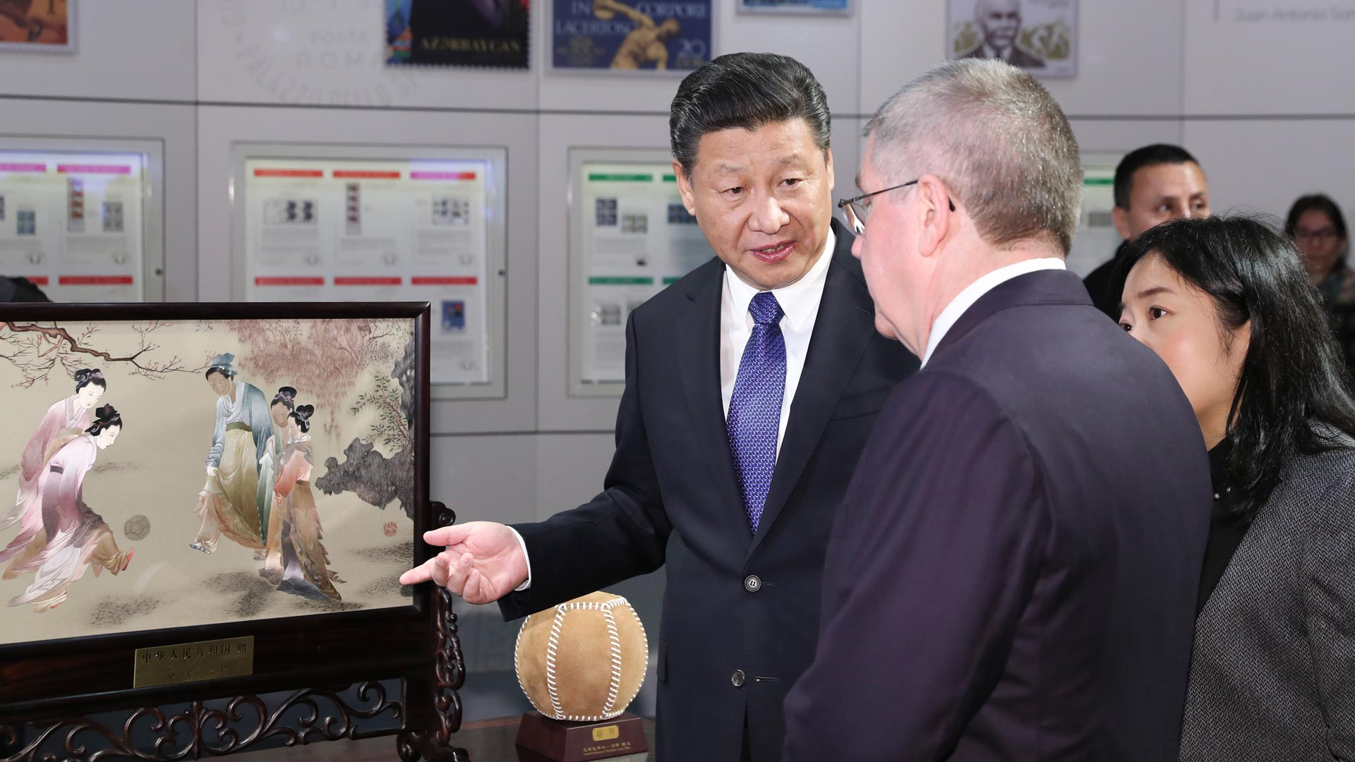 1月18日,國(guó)家主席習(xí)近平在瑞士洛桑國(guó)際奧林匹克博物館會(huì)見(jiàn)國(guó)際奧林匹克委員會(huì)主席巴赫。 新華社記者 姚大偉 攝2017-01-19