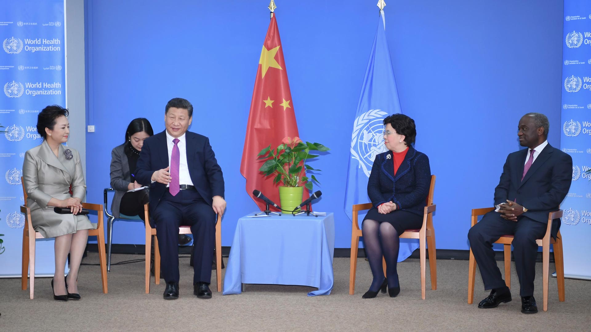 1月18日,國(guó)家主席習(xí)近平在瑞士日內(nèi)瓦訪問(wèn)世界衛(wèi)生組織并會(huì)見(jiàn)陳馮富珍總干事。 新華社記者 李學(xué)仁 攝2017-01-19