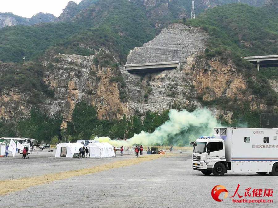 演練現場共調集緊急醫(yī)學救援、突發(fā)急性傳染病防控、突發(fā)中毒事件處置3類6支國家衛(wèi)生應急隊伍,動用制式衛(wèi)生應急車輛150余臺、模塊化醫(yī)療救治帳篷40余頂、救援直升機1架,共有京津冀22家醫(yī)療衛(wèi)生單位的330余人參加了演練。
