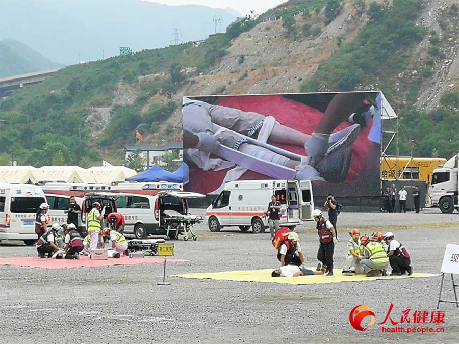 應急救援隊現場對患者分類救援 攝影/楊迪