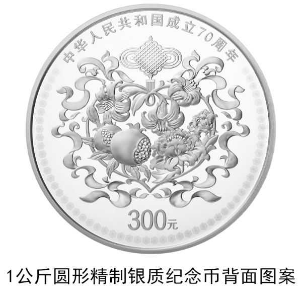 央行介紹,金質(zhì)紀(jì)念幣和銀質(zhì)紀(jì)念幣正面圖案均為中華人民共和國國徽,并刊國名、年號。金質(zhì)紀(jì)念幣有150克圓形和8克圓形兩種,其中150克圓形金質(zhì)紀(jì)念幣背面圖案為寓意民族團(tuán)結(jié)同心,普天歡頌國慶的組合圖案,最大發(fā)行量2000枚。銀質(zhì)紀(jì)念幣有300元、50元、10元三種面額。該套金銀紀(jì)念幣由中國金幣總公司總經(jīng)銷。