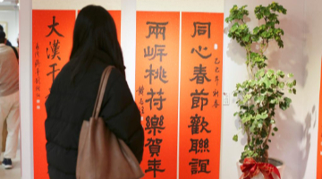 1月23日,游客在湖州吴兴的小西街西岸美术馆观赏年画美术作品。