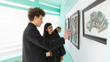 10月17日,人们在塞尔维亚贝尔格莱德的中国文化中心参观“山海志合——庆祝中塞人民友谊70年书画展”。