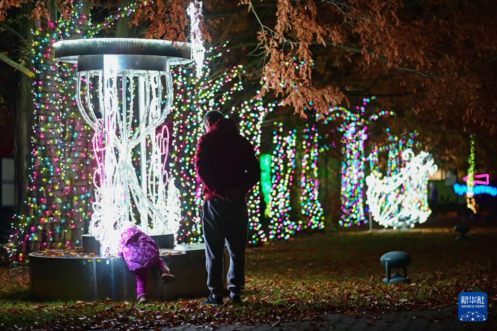 10月25日,在波兰华沙,游客参观波兰科学院植物园举办的“光之花园”灯光展。