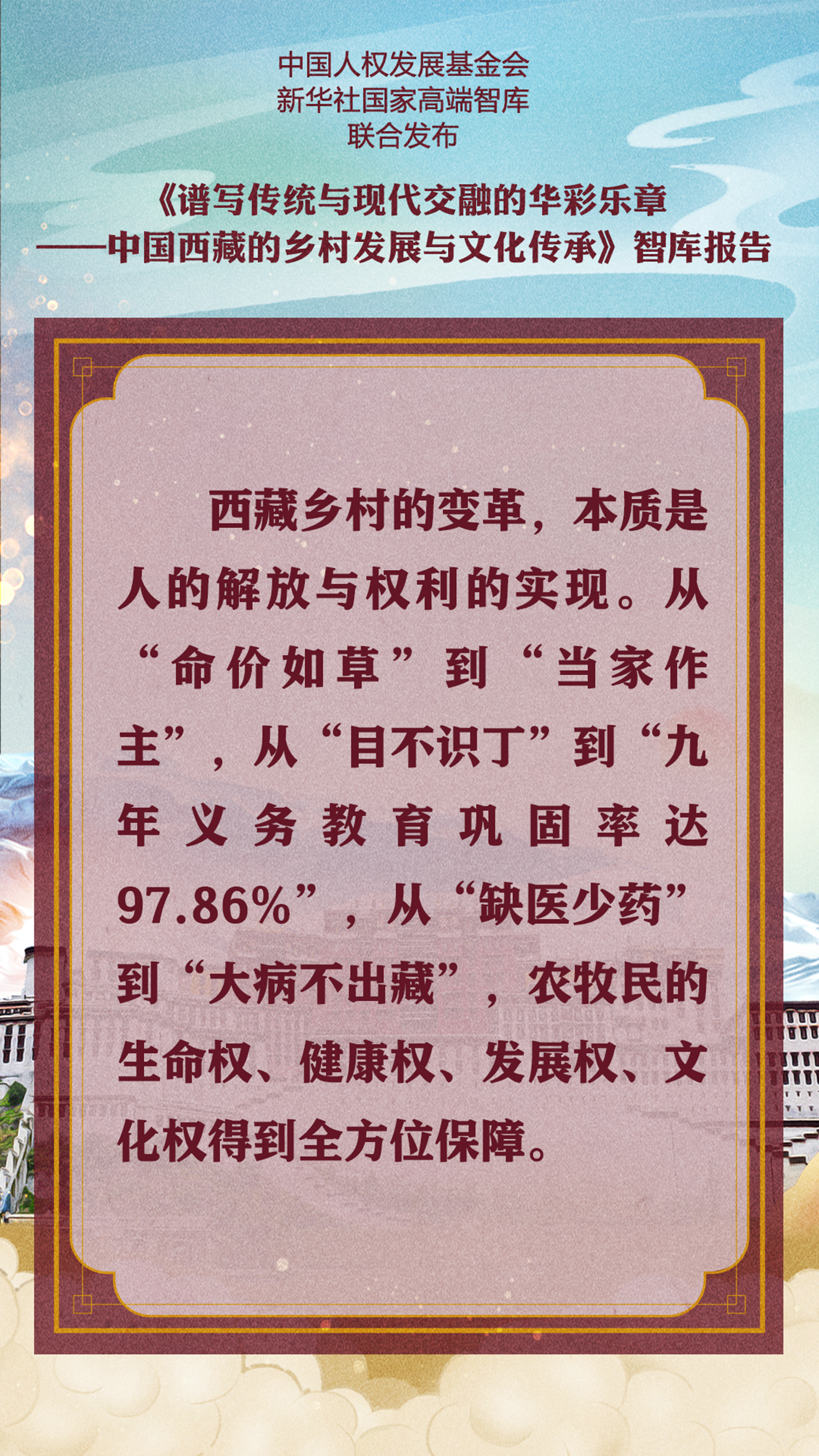 中国人权发展基金会、新华社国家高端智库10月16日在北京联合发布中英文智库报告《谱写传统与现代交融的华彩乐章——中国西藏的乡村发展与文化传承》。