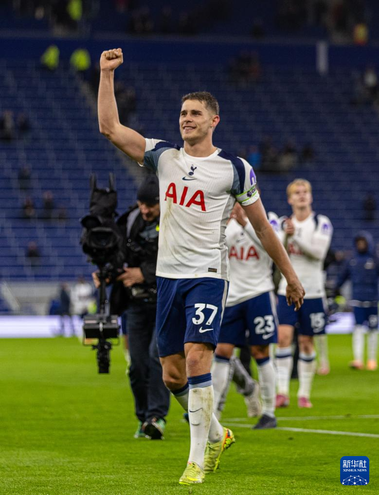 10月26日,热刺队球员范德芬在比赛后庆祝胜利。