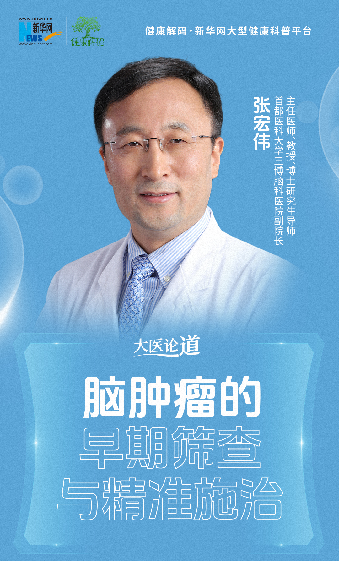 首都医科大学三博脑科医院副院长、主任医师、教授、博士研究生导师张宏伟做客新华网《大医论道》栏目