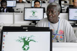 記者在聯(lián)合國(guó)氣候變化大會(huì)新聞中心處理稿件